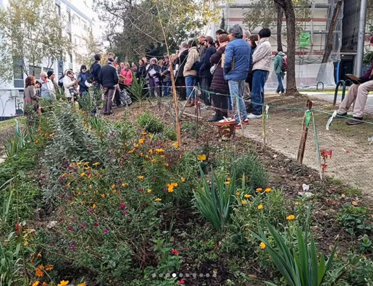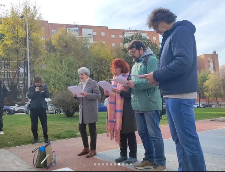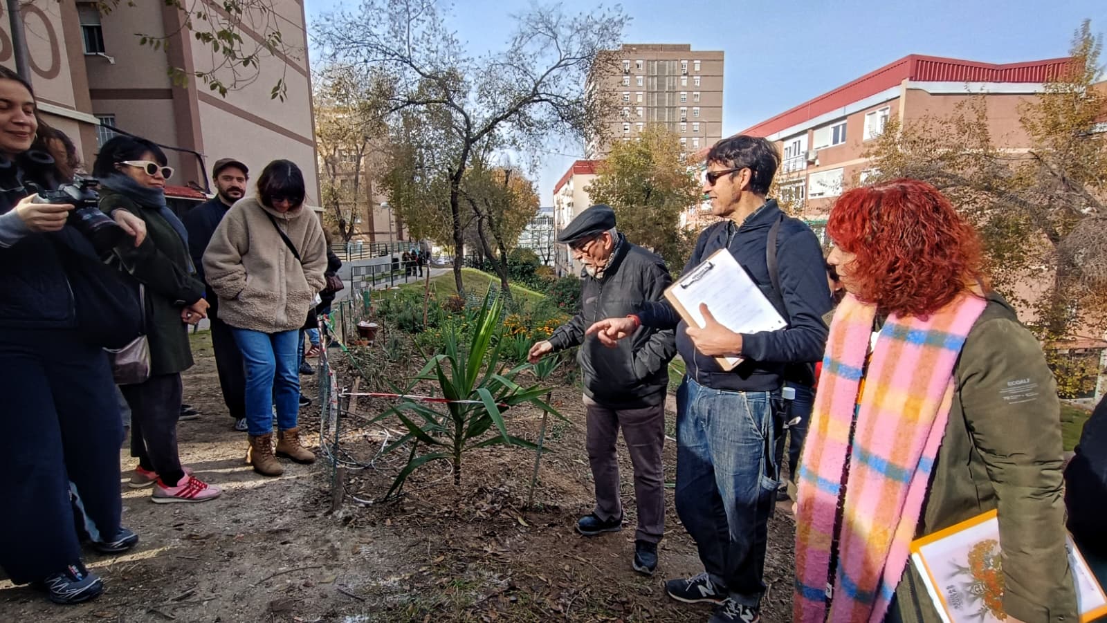 La idea de este paseo , además de mostrar estas iniciativas vetrdes y pasajes del libro, fue recoger testimonios para ue Silvia escriba un nuevo capítulo en el que las nuevas vivencias, recuerdos y experiencias se articulen en torno al nuevo fenómeno de la jardinería vecinal en Moratalaz.