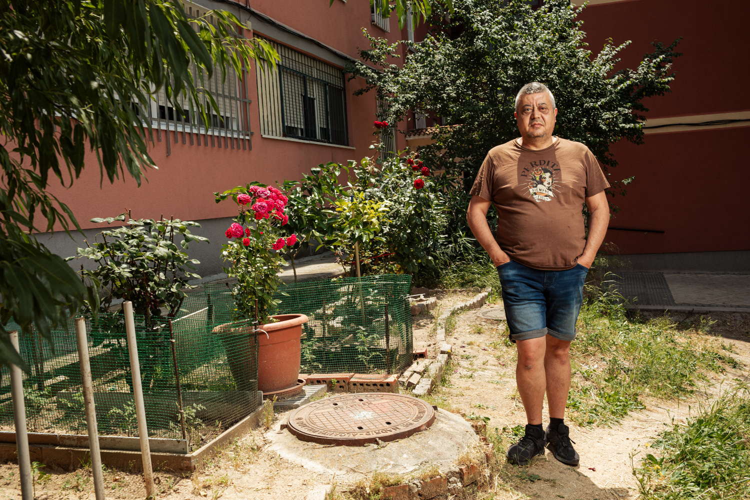 Vitoriano es una especie de interbloque tímida, nada expansiva ni colonizadora. Se mueve entre la ventana de su casa, donde recoge el agua que expulsa el aire acondicionado, y el jardín situado justo debajo del aparato, donde riega con el agua sobrante las plantas de un estrecho parterre.